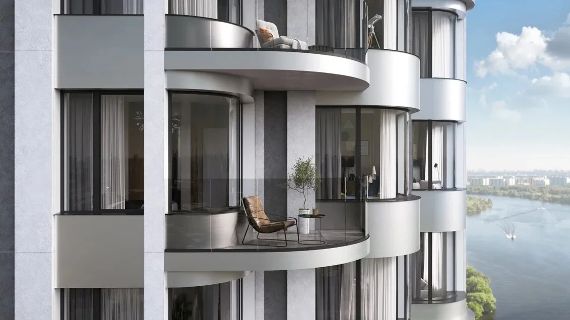 Эффектная криволинейность. Наряду с панорамными пентхаусами, откуда открываются захватывающие виды, в этих корпусах много стандартных квартир, но архитекторам удалось во всех лотах сделать крупноформатные окна.