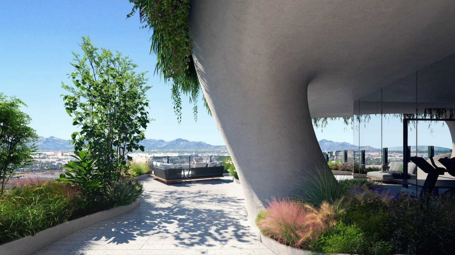 По словам архитекторов, работая над объектом, они черпали вдохновение в близлежащих Скалистых горах, которые можно увидеть с террасы, размещенной на крыше высотки. Здесь же будет разбит сад, открыты бассейн и спа-комплекс.