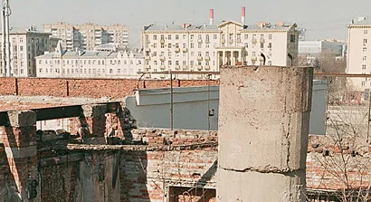 Кинотеатр, от которого сегодня остались только одни руины, имеет интересную историю. В конце XIX века на этом месте был построен один из цехов судостроительного завода братьев Бромлей. Остатки арки, через которую суда заходили на завод, читаются в кирпичной кладке сохранившегося фронтона. В 1923 году для Всероссийской сельскохозяйственной выставки архитектор Алексей Щусев перестроил бывший заводской цех в выставочный павильон. В 30-е годы прошлого века по проекту бразильского архитектора Родриго да Коста здесь был устроен звуковой кинотеатр. В 1942 году в центральную часть здания попала бомба, здание было разрушено.