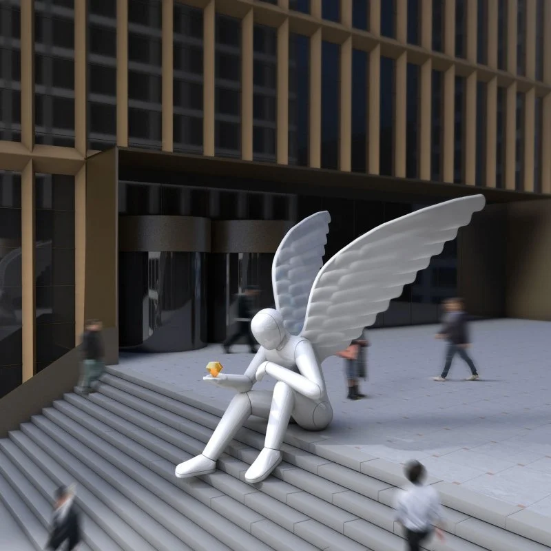 Скульптура ангела будет установлена осенью 2024 года на главной площади офисного квартала от бюро «Цимайло Ляшенко и партнеры» по адресу: Бумажный проезд, д. 19.