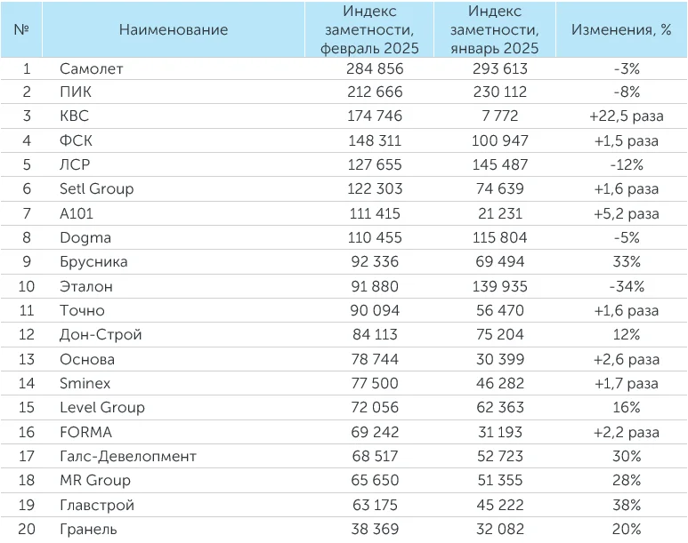 Система мониторинга и анализа СМИ и соцмедиа СКАН-Интерфакс совместно с онлайн-порталом «Строительная газета» подготовили медиарейтинг девелоперских компаний за февраль 2025 года. В лидерах рейтинга свое присутствие ГК «Самолет», ГК ПИК и MR Group. Помимо данных компаний в ТОП-3 вошли «КВС» и А101.