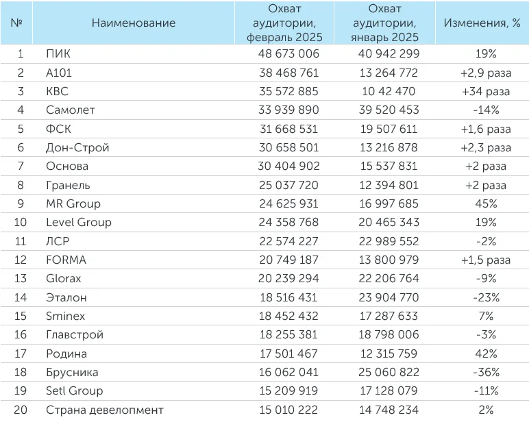 «А101» в феврале 2025 года заняла второе место по охвату аудитории.