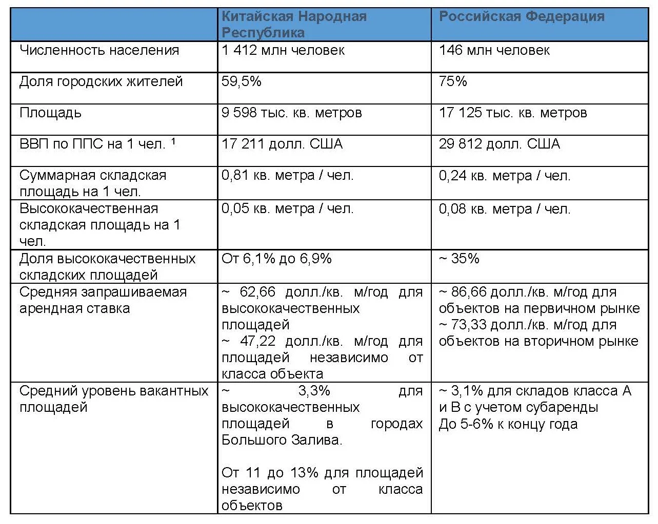 В отличие от средней арендной ставки на российском рынке складской недвижимости, средняя ставка аренды в Китае не показывает постоянного роста и относительно стабильна, несмотря на значительные различия между провинциями. Для России рост ставки обусловлен низкой вакансией высококачественных объектов вместе с растущим спросом со стороны арендаторов. Для китайского рынка ввиду подавляющего объема менее востребованных складских площадей низкого класса вакансия остается на стабильном уровне 11–13%. По мнению аналитиков Knight Frank Mainland China, это связано с тем, что растущий спрос на высококачественные складские площади в некоторых провинциях своевременно удовлетворяется открытием новых объектов.