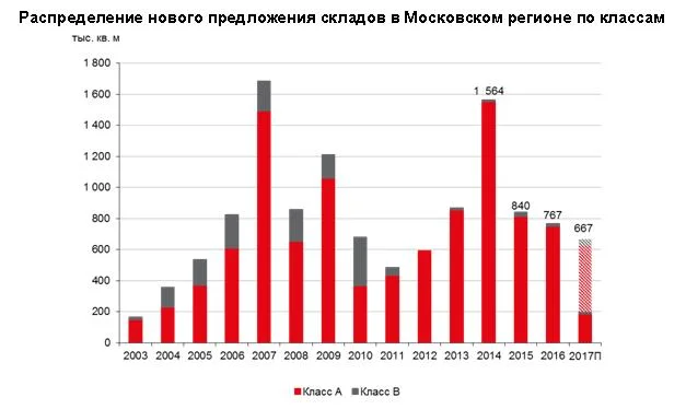 Объем новых сделок аренды и продажи складских площадей в Московском регионе во 2-м квартале составил 343 тыс. кв. м, в целом за полугодие – около 472 тыс. кв. м по сравнению с 391 тыс. кв. м в аналогичном периоде 2016 года. Показатель спроса по итогам года может составить около 900 тыс. кв. м, что будет сопоставимо с результатами 2016 года.