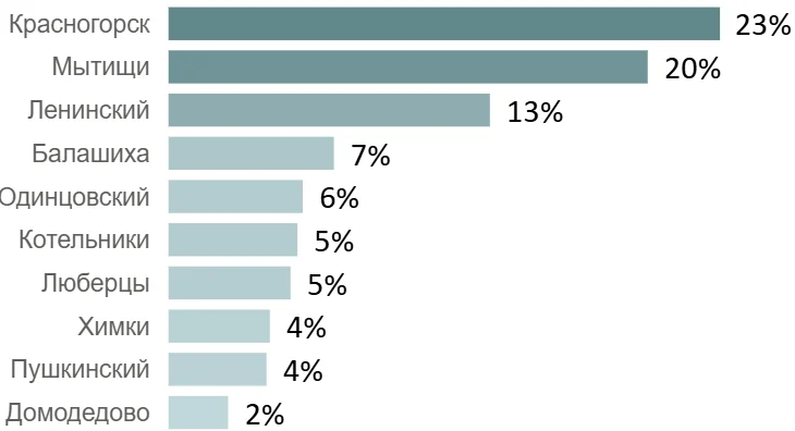 10 округов с наибольшей долей спроса по кол-ву ДДУ в Московской области