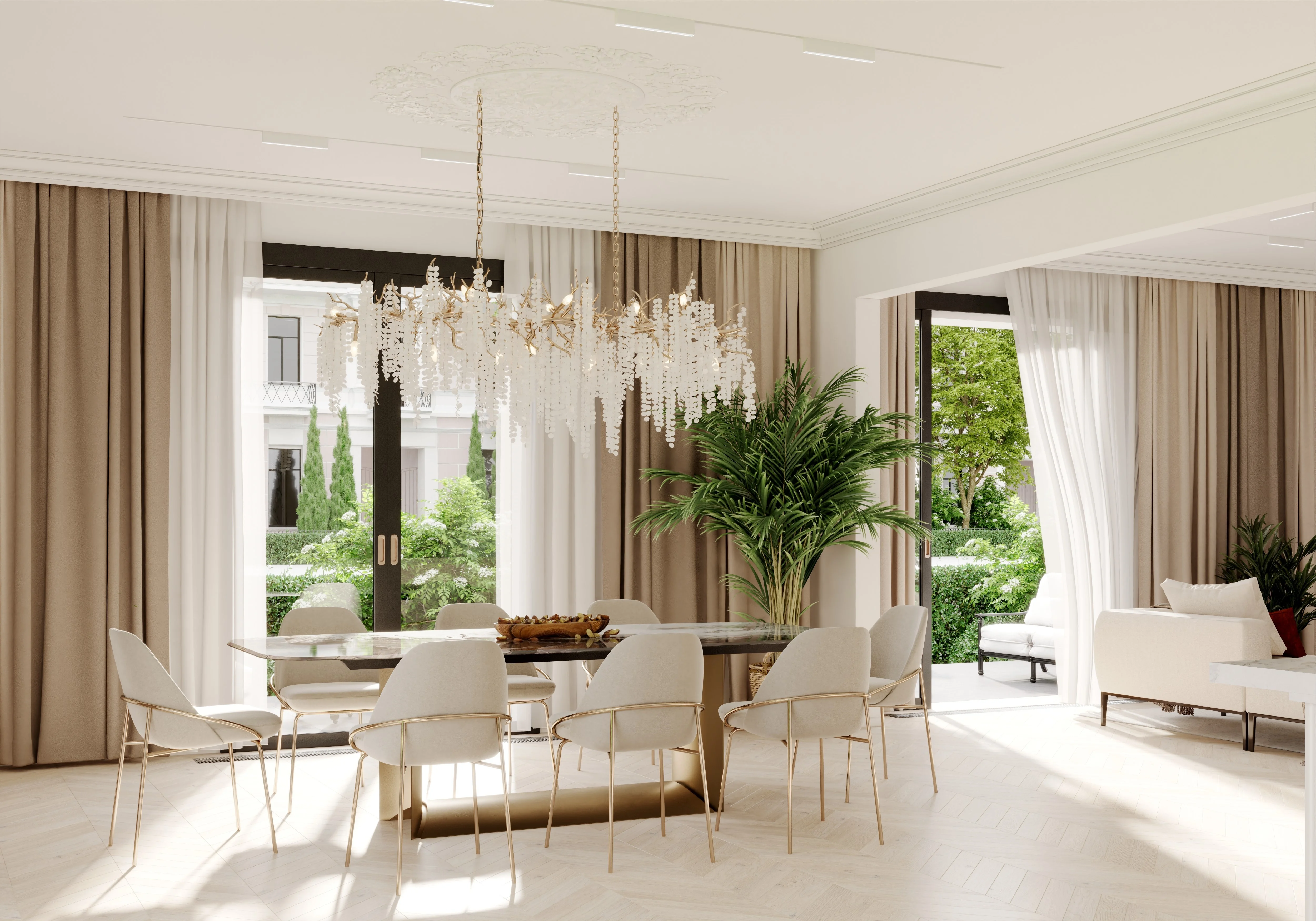 Резиденции в клубном доме «Золотой квартал» сдаются без отделки или с отделкой в неоклассическом французском или английском стиле. Покупатели могут выбрать отделочные материалы в светлых или темных тонах, подчеркнув статус и элегантность интерьера. Ванные комнаты оборудованы элитной сантехникой, а специалисты компании предлагают помощь в подборе и доставке мебели от ведущих мировых брендов.
