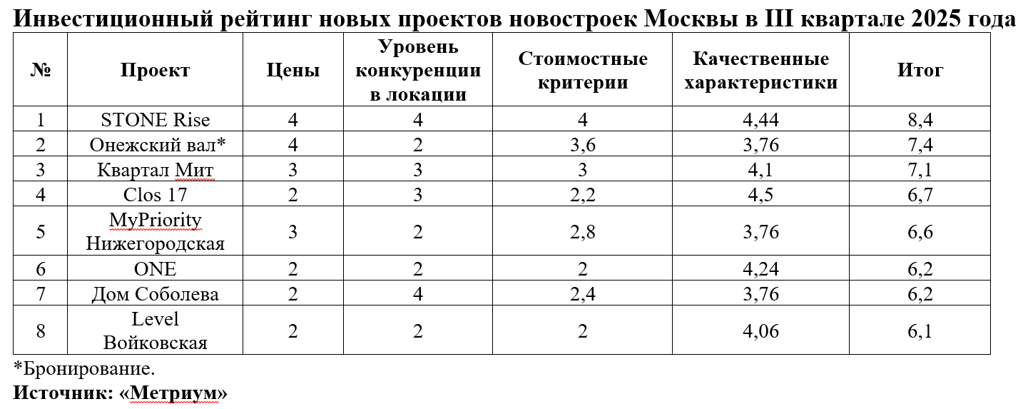 В III квартале 2025 года на рынке новостроек Москвы начались открытые продажи (в том числе бронирование) восьми проектов. Эксперты «Метриум» составили рейтинг наиболее перспективных из них с точки зрения инвестиционной привлекательности.