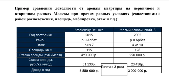 Недвижимость в новом доме дает возможность собственнику устанавливать дополнительную премию к ставке аренды за новую отделку, что также увеличивает арендный доход.