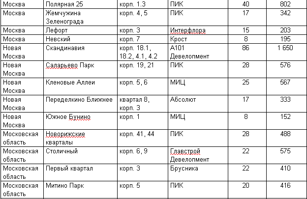 Обращает внимание и большое число проектов, которые запущены на месте участков, ранее свободных от застройки. Так, в Москве стартовали проекты «Огни» (на ранее неосвоенной территории в долине речки Раменки), «Мякинино Парк» (в излучине Москва-реки), FoRest (на пустыре в Ново-Переделкино), «Дискавери» и «Дискавери Парк» (на месте гаражных боксов в Ховрино), D1 (на месте автостоянки у платформы «Дмитровская»); в Подмосковье начались продажи в «Датском квартале» (на неиспользуемом поле на окраине Мытищ) и «Речном» (концепция которого живо напоминает не самые удачные проекты точечной застройки рядом с элементами природного комплекса из середины 2000-х). Увеличение доли новых проектов в формате green field освоения территорий — скорее негативная тенденция для развития столичной агломерации, так как, в отличие от проектов редевелопмента промзон, эти жилые комплексы сильнее повышают нагрузку на улично-дорожную сеть и объекты городской инфраструктуры.