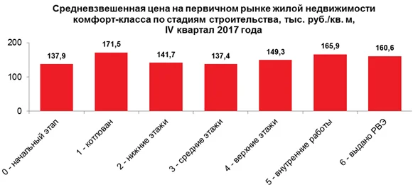 В комфорт-классе сильной зависимости цены от стадии строительной готовности нет, т.к. фактор местоположения и масштабности объектов оказывает большее влияние.