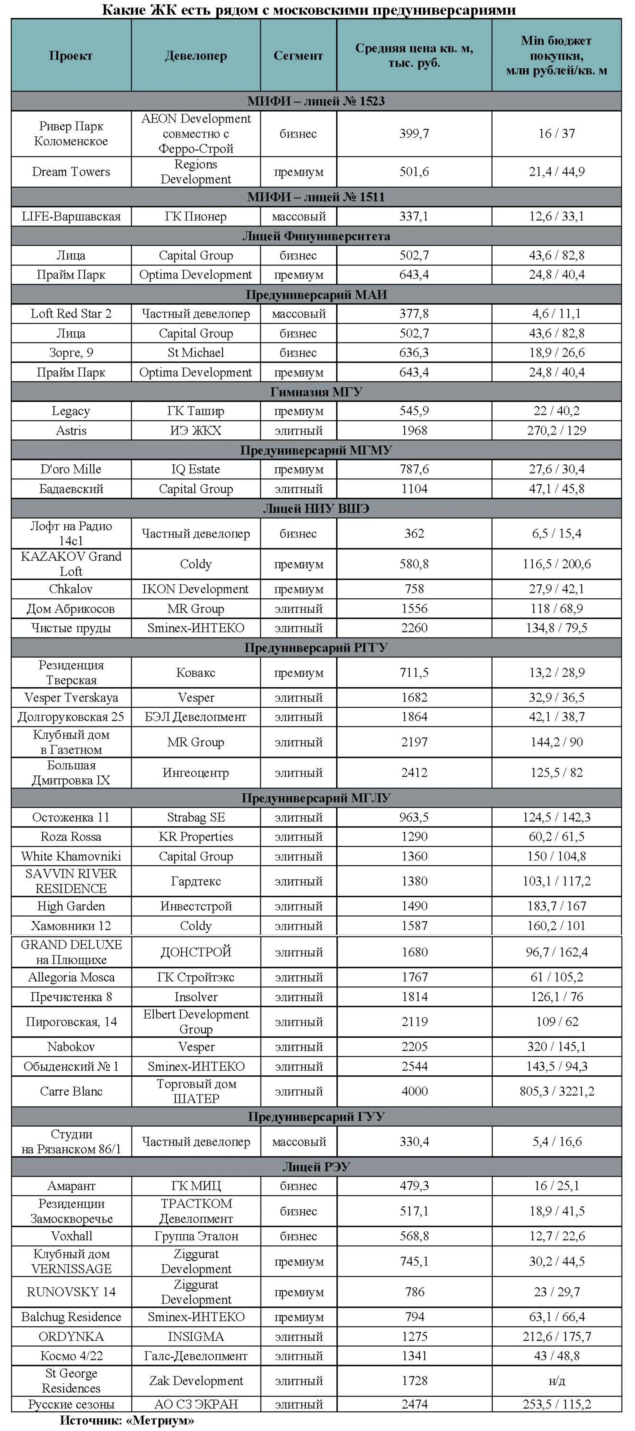 Число старшеклассников, обучающихся в предуниверсариях с 2013 года выросло в девять раз, сообщил мэр Москвы Сергей Собянин. Сейчас в столице действуют 15 таких профильных учреждений при вузах, где ученики 8-11 классов не только осваивают школьную программу, но и интенсивно готовятся к поступлению в университет. Рядом с большинством из них реализуется первичное жилье. Эксперты «Метриум» рассказали «Стройгазете» о предуниверсариях Москвы и предложили ближайшие актуальные варианты новостроек.
