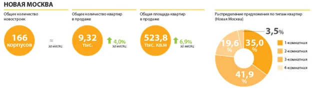Что касается ценовой ситуации, то, на обеих территориях средний уровень цен показал прирост: так в старых границах прирост составил 1,5%, в Новой Москве – 2,9%. В старых границах Москвы драйвером выступили новостройки бизнес-класса, на них пришелся основной рос цен (+2,2%), в Новой Москве максимальный рост (+2,9%) показали новостройки класса комфорт.