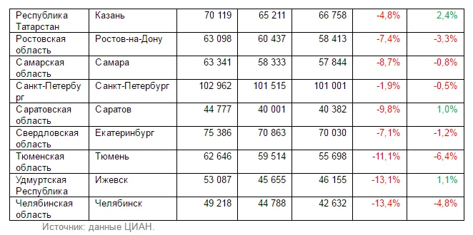 Используется гибкий подход к определению границ региональных рынков. Прямое использование формальных административных границ городов искажает реальные рыночные параметры в некоторых локациях (Волгограде, Саратове, Краснодаре, Екатеринбурге, Новосибирске), поэтому для расчета индекса ЦИАН мы оперируем массивом данных в границах ближнего пояса соответствующих агломераций.