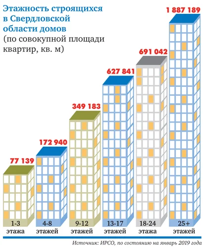 Половина строящихся сейчас в Свердловской области жилых «квадратов» находятся в домах на 25+ этажей