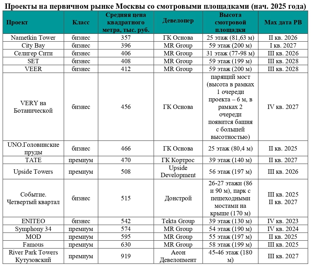 «Наличие смотровых площадок в жилых комплексах – важный элемент формирования современного образа жизни резидентов, – отмечает Жанна Махова, заместитель генерального директора по стратегии и развитию продукта компании MR Group. – Жители многих наших комплексов получат возможность любоваться захватывающими панорамами столицы прямо из своих домов. Смотровые площадки – это не только источник эстетического удовольствия, но и место для отдыха и общения. Здесь можно проводить время с семьей, встречаться с друзьями или просто наслаждаться тишиной и покоем. Кроме того, наличие смотровой площадки повышает инвестиционную привлекательность жилья, потому что проектов с такой характеристикой на рынке мало».