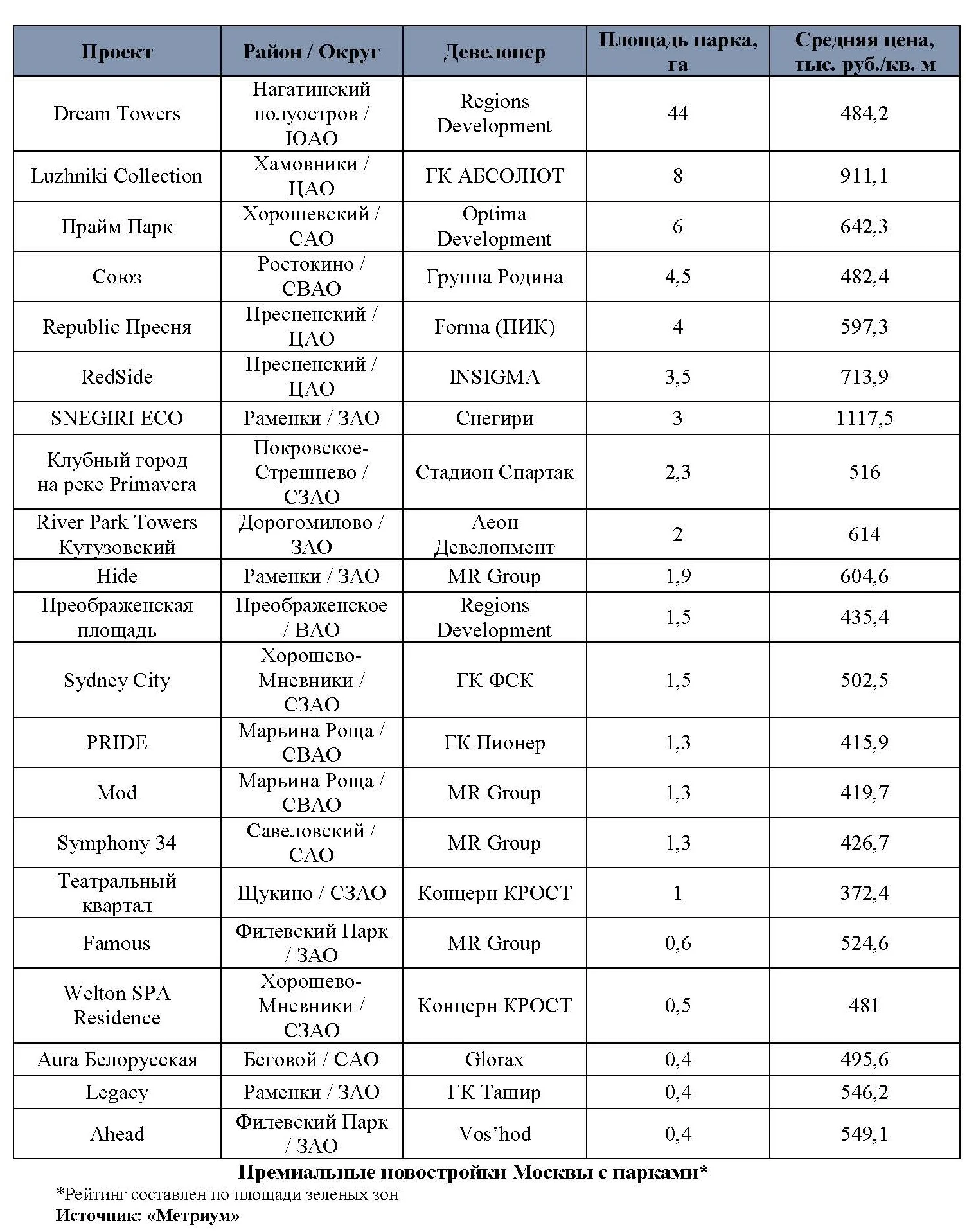 Парки, скверы, сады разбиты в 21 проекте премиум-класса из 55, представленных сейчас на столичном первичном рынке. Соответственно, доля премиальных новостроек с собственными зелеными зонами составляет 38,2%. С весны 2018 года данный показатель вырос на 15,1%. Тренд на увеличение числа парковых зон, главным образом, связан с расширением масштаба комплексов премиум-класса, а также со смещением предложения в районы за пределами плотно застроенного Центрального округа.