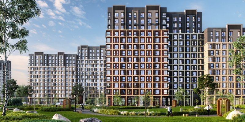 Сам комплекс воплощается как логичное продолжение этой гармонии. Разновысотные дома от 9 до 14 этажей, выполненные по монолитной технологии, не доминируют над ландшафтом, а мягко встраиваются в него. Фасады, облицованные в природной палитре бетонной плиткой, керамогранитом и металлическими кассетами, меняют оттенок в зависимости от погоды и времени дня. Но главное украшение интерьеров — виды из окон. Благодаря угловому и увеличенному остеклению жилые пространства наполняются светом, а лесные пейзажи становятся частью домашней атмосферы. Широкий выбор планировочных решений — от уютных квартир-студий до просторных лотов евроформата с объединенными кухнями-гостиными — дает полную свободу для воплощения своих представлений об идеальном доме. Планировки продуманы до мелочей: здесь есть место для всего — от личной коллекции книг в гардеробной до спортивного инвентаря в просторном холле.