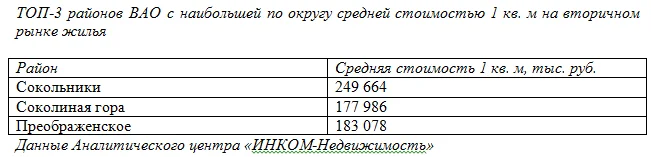 По данным аналитического центра «Инком-Недвижимость», в ЮВАО и ВАО на данный момент фиксируется наименьшая среди других административно-территориальных единиц старой Москвы (за исключением ЗелАО) средняя стоимость 1 кв. м на вторичном рынке недвижимости – 147 962 рублей и 153 244 рублей соответственно.