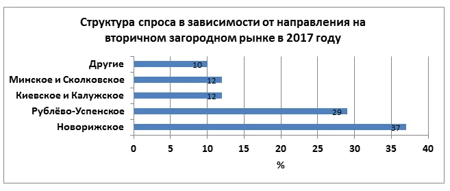 Лидер спроса – Новорижское шоссе, в 2016 году лидером спроса на вторичном рынке было Рублево-Успенское шоссе.