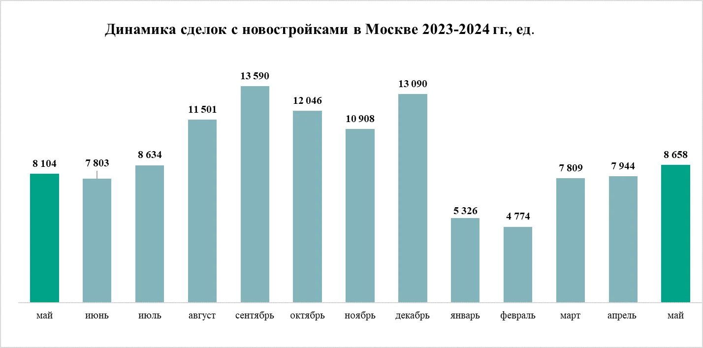 Росреестр Москвы в мае 2024 года зарегистрировал 8,7 тыс. договоров долевого участия (ДДУ), что на 9% больше, чем в апреле, когда было зарегистрировано 7,9 тыс. ДДУ. По сравнению с маем 2023 года число сделок также выросло на 7%.