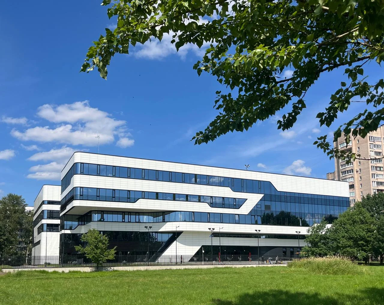 Переносимся в Санкт-Петербург, в Калининском районе которого возвели сразу пять этажей для спортивных активностей. Работы над многофункциональным центром - новым зданием школы олимпийского резерва имени Анатолия Рахлина - завершились в этом году. Теперь здесь смогут заниматься и соревноваться в нескольких видах спорта: дзюдо, фехтовании, пулевой стрельбе и художественной гимнастике. Подвал здания отдан под тиры для спортивной стрельбы, часть первого - под раздевалки и медико-восстановительный центр.