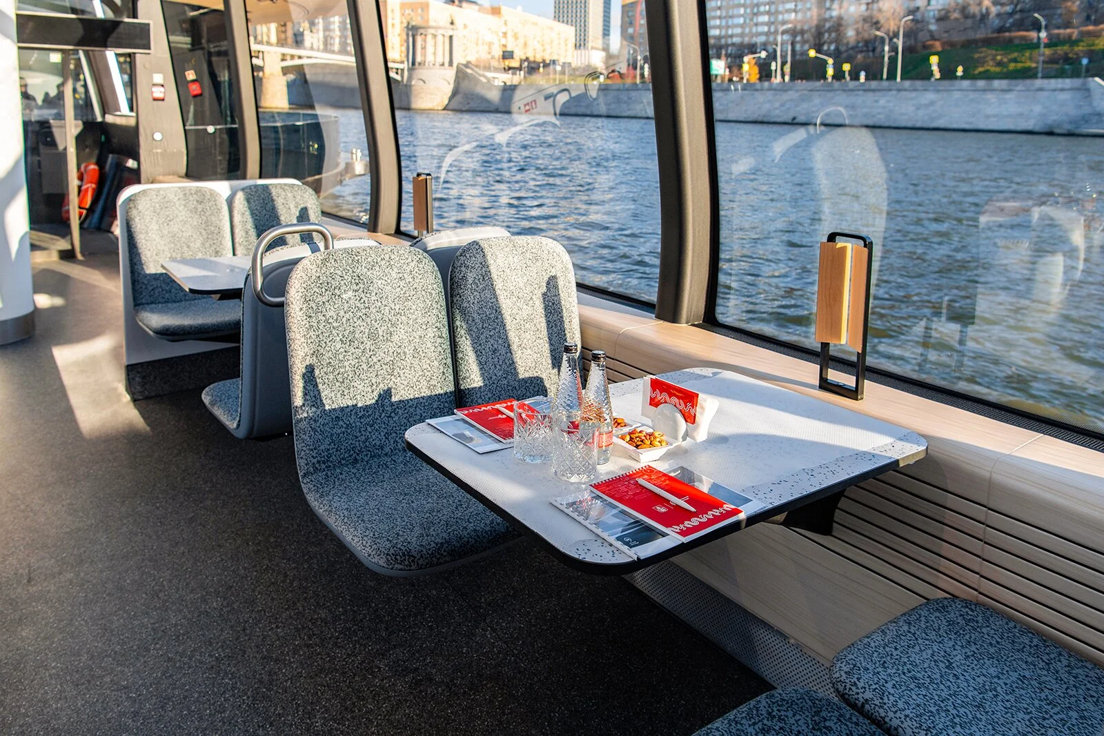 Суда порядка 22 метров в длину вмещают до 50 пассажиров, включая места для маломобильных граждан. В пассажирском салоне установлены информационные экраны и USB-зарядки, работает бесплатный Wi-Fi, предусмотрены площадки для перевозки самокатов и велосипедов.