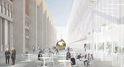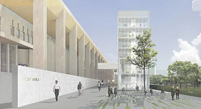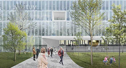 Помимо этого, архитекторы предлагают построить с задней стороны дворца шестиэтажный культурный центр с подземной парковкой. Его площадь составит более 10 тыс. кв. м. Здесь разместятся офисы, музей, мастерские и фудмаркет. Между двумя зданиями планируется обустроить пешеходную зону «АРТБАТ» с выходом к парку. Историческое и новое здания на уровне третьего этажа соединит переход. В настоящее время объект находится на стадии проектирования.