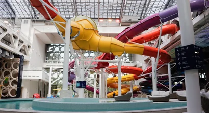 Уровнем выше разместились водные аттракционы ведущих мировых производителей. Для детей будет работать водный городок, причем на всех горках предусмотрена автоматическая система безопасного спуска. Взрослые посетители смогут испытать себя на комплексе из четырех горок высотой от 9,9 до 16,8 метра и длиной от 135 до 175 метров. Для них также оборудован аттракцион со спуском на надувных плотах. Помимо этого в комплексе имеется бассейн с уклоном для имитации морской волны, где можно будет учиться серфингу.