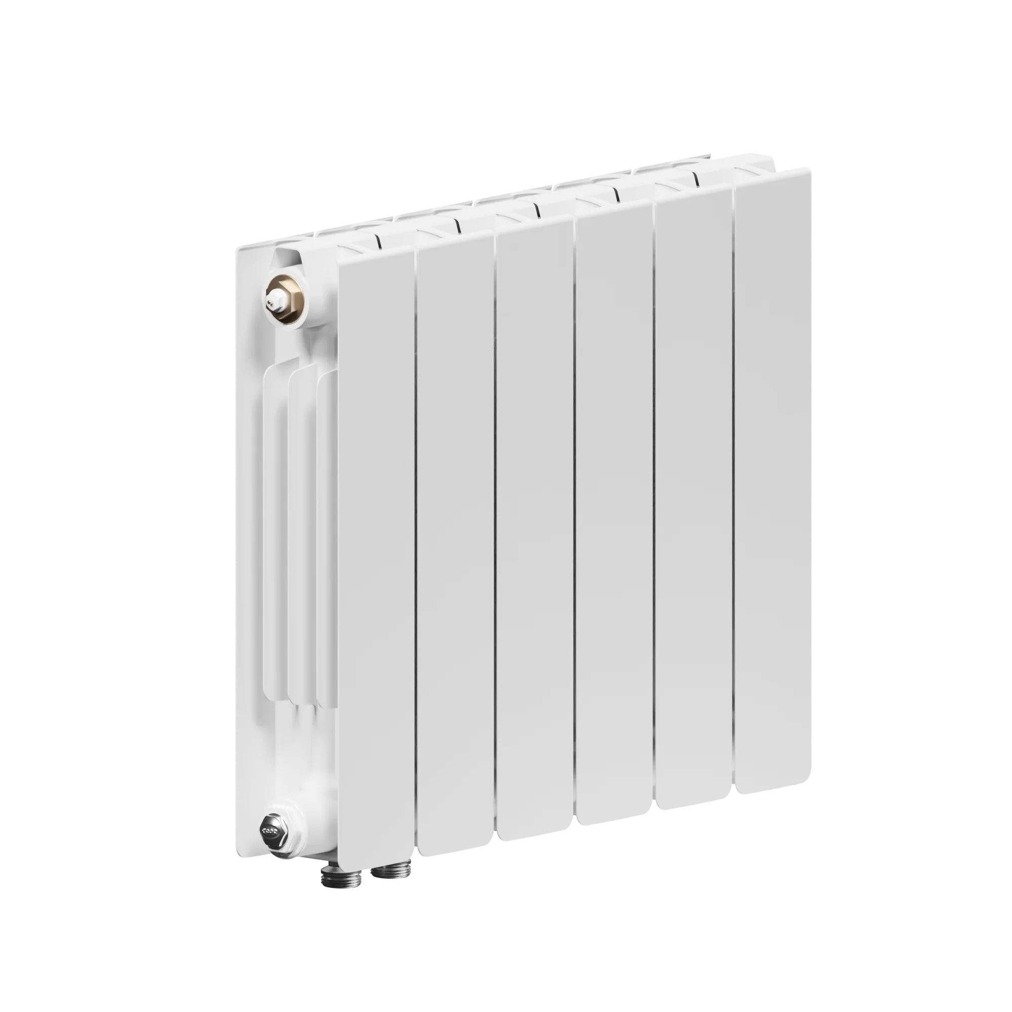 Биметаллический радиатор представляет собой конструкцию, внутри которой располагается стальной сердечник. Он состоит из горизонтального коллектора и вертикальных каналов. Корпус вокруг него выполнен из алюминия.