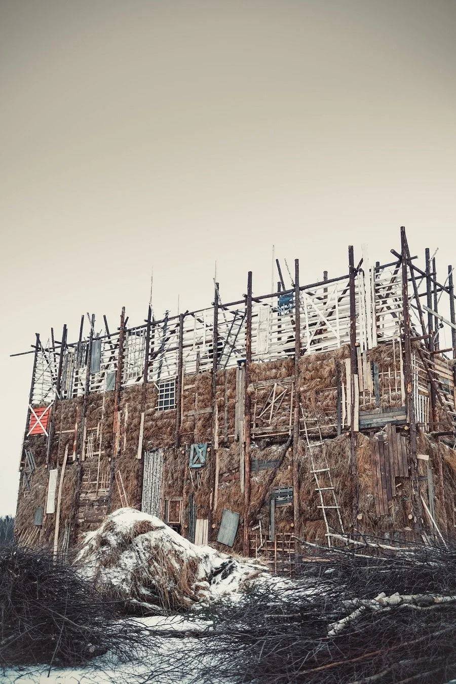 Традиционно арт-объект к Масленице собирается из того, что удалось найти в округе. Куб высотой 19 метров возводиться по принципу мазанки и состоит из сена, старых веток, предметов быта (дверей, досок, ящиков) и другого строительного мусора. До сожжения каждый посетитель сможет заглянуть внутрь замкнутого пространства-колодца и полежать на сене, рассматривая небо. Строительство объекта заняло три месяца.