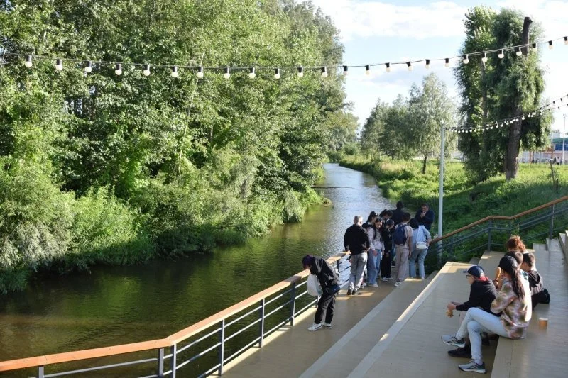 Важной особенностью маршрута стало бережное сохранение окружающего ландшафта — рельефа местности и произрастающих на ней растений. Территорию дополнительно озеленили деревьями-крупномерами тех пород, которые издавна растут в окрестностях города, уложили рулонные газоны. Все это превратило пространство в красивую прогулочную зону со скамейками для отдыха.
