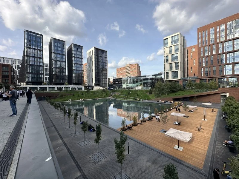 Четвертый — активное использование МАФ и интеграция арт-объектов. «Малые архитектурные формы становятся все более причудливыми. Сейчас это не только фонтаны или посадочные места. На территориях жилых и деловых кварталов появляются скульптуры, инсталляции, часто от современных художников, известных в арт-среде», — рассказывает главный архитектор и партнер бюро MORS ARCHITECTS Дмитрий Макеенко.