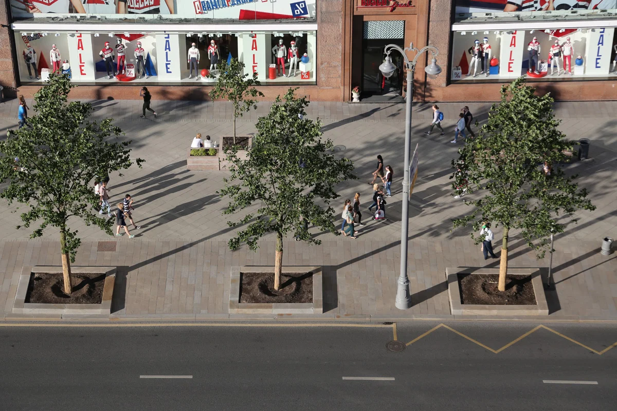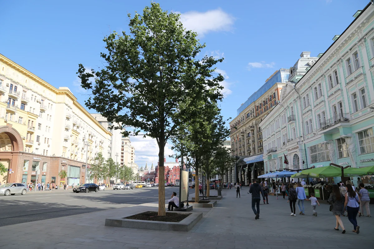 Особое внимание уделяется озеленению столицы. На улицы высадят около 4,5 тыс. взрослых деревьев. Важный момент благоустройства — дополнительное озеленение центральных улиц, возвращение деревьев на Тверскую улицу и Садовое кольцо.
