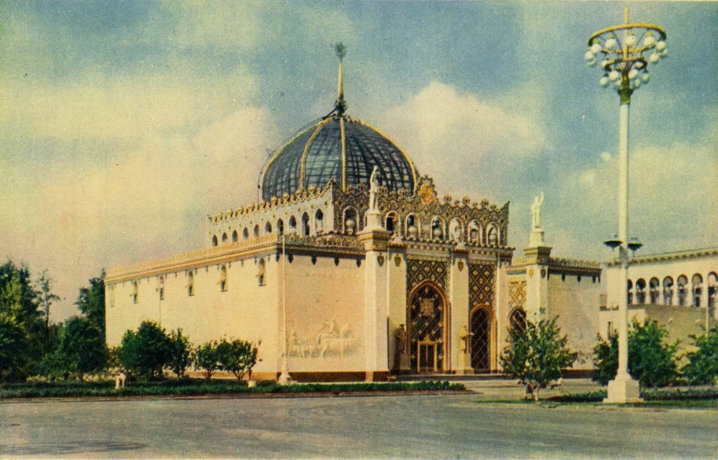 Надо сказать, что о существовании шпиля знали немногие, еще меньше его видели, что называется, вживую. Шпиль был установлен в 1954 году, но вскоре демонтирован, и увидеть его можно было только на фотографиях. А после смены экспозиции в 1966-1967 годах на месте «Казахстана» появился павильон «Металлургия». Здание подверглось реконструкции по проекту архитектора С. Кобецкого и инженера В. Анисько: высоту увеличили за счет пристройки, которая заменила купол, а со стороны заднего фасада добавили новый объем.