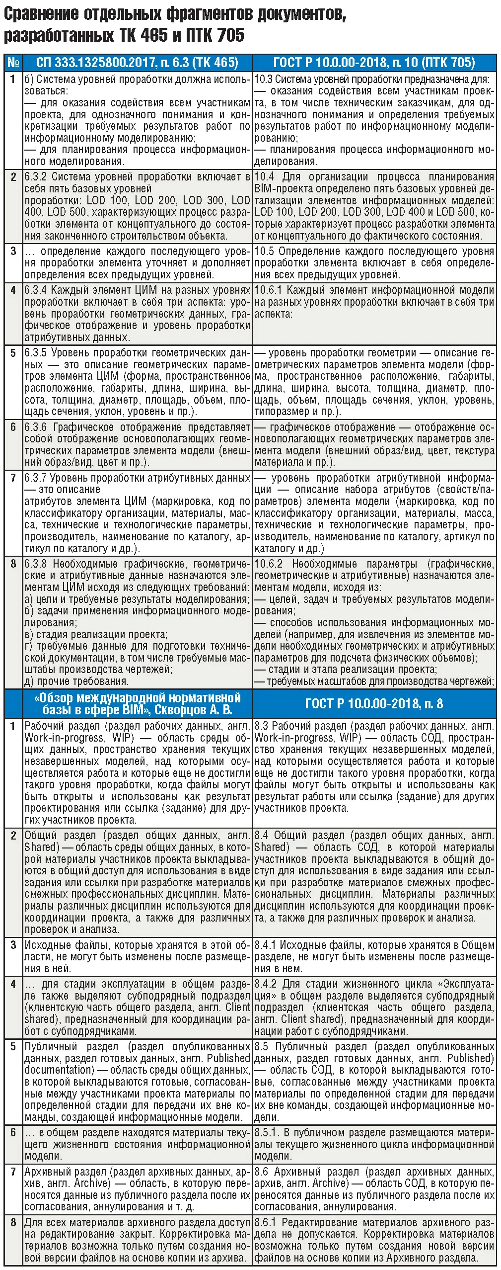 Проекты же двух национальных стандартов, которые сделаны новым комитетом и представлены на обсуждение (ГОСТ Р 10.0.01-2018 «Система стандартов информационного моделирования зданий и сооружений. Термины и определения» и проект ГОСТ Р 10.0.00-2018 «Система стандартов информационного моделирования зданий и сооружений. Основные положения. Общие требования к технологии информационного моделирования») дублируют положения действующих стандартов. В их текстах много ошибок и терминологических несоответствий с действующей нормативной базой, что, по существу, делает стандарты неприменимыми на практике.